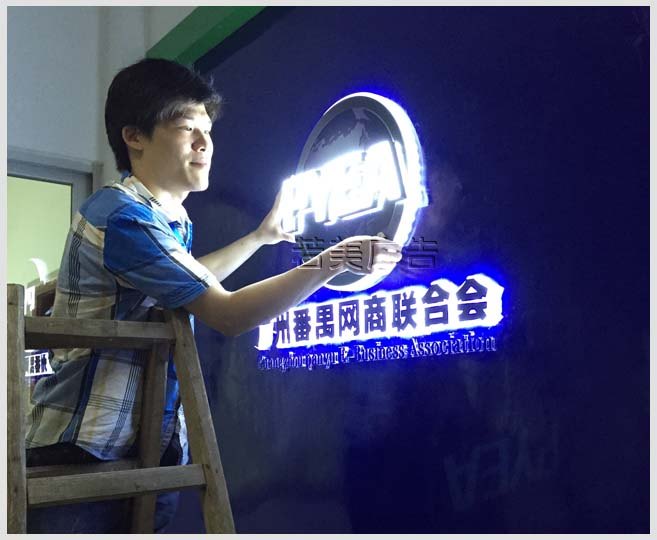 番禺網(wǎng)商會迷你字由若美廣告負責設(shè)計制作安裝一體式制作形成,采用不銹鋼字體加上亞克力和led燈制作形成的一款高大上節(jié)能環(huán)保型的廣告發(fā)光字。