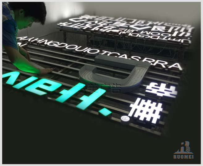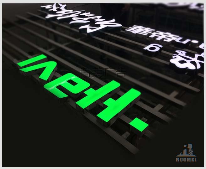 樹脂發(fā)光字也是廣告標(biāo)識(shí)字的一種,它是由設(shè)計(jì)切割成各種字體/特殊形狀的金屬外殼,然后在金屬模具中布置led燈,最后再用特殊工藝在形狀模具中灌入樹脂等填充材料而形成的一款勻光、亮麗、耐腐蝕的品牌廣告字。