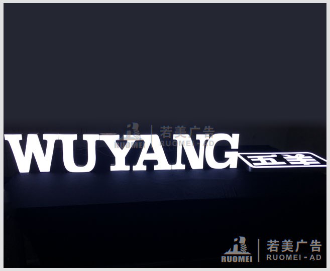 樹脂發(fā)光字也是廣告標識字的一種,它是由設(shè)計切割成各種字體/特殊形狀的金屬外殼,然后在金屬模具中布置led燈,最后再用特殊工藝在形狀模具中灌入樹脂等填充材料而形成的一款勻光、亮麗、耐腐蝕的品牌廣告字。