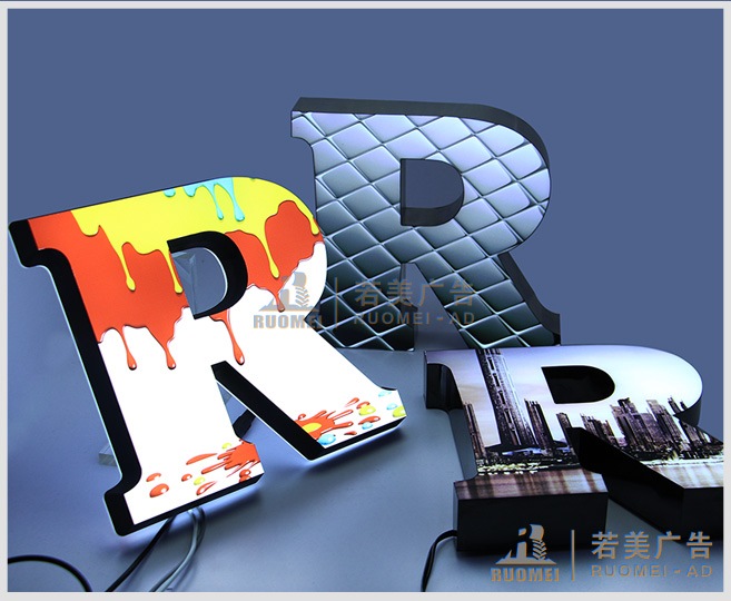 您的品牌需要這樣個(gè)性地表達(dá)——印花樹脂發(fā)光字!為您的品牌綻放異樣光彩!印花樹脂發(fā)光字,采用特殊工藝在廣告字原有的基礎(chǔ)上“印記”個(gè)性品牌的圖案,個(gè)性展示,彰顯品牌特性!是2015男最好的廣告品牌宣傳發(fā)光字,印花樹脂發(fā)光字除了具有個(gè)性的特色外,還具有一般樹脂發(fā)光字的特色: